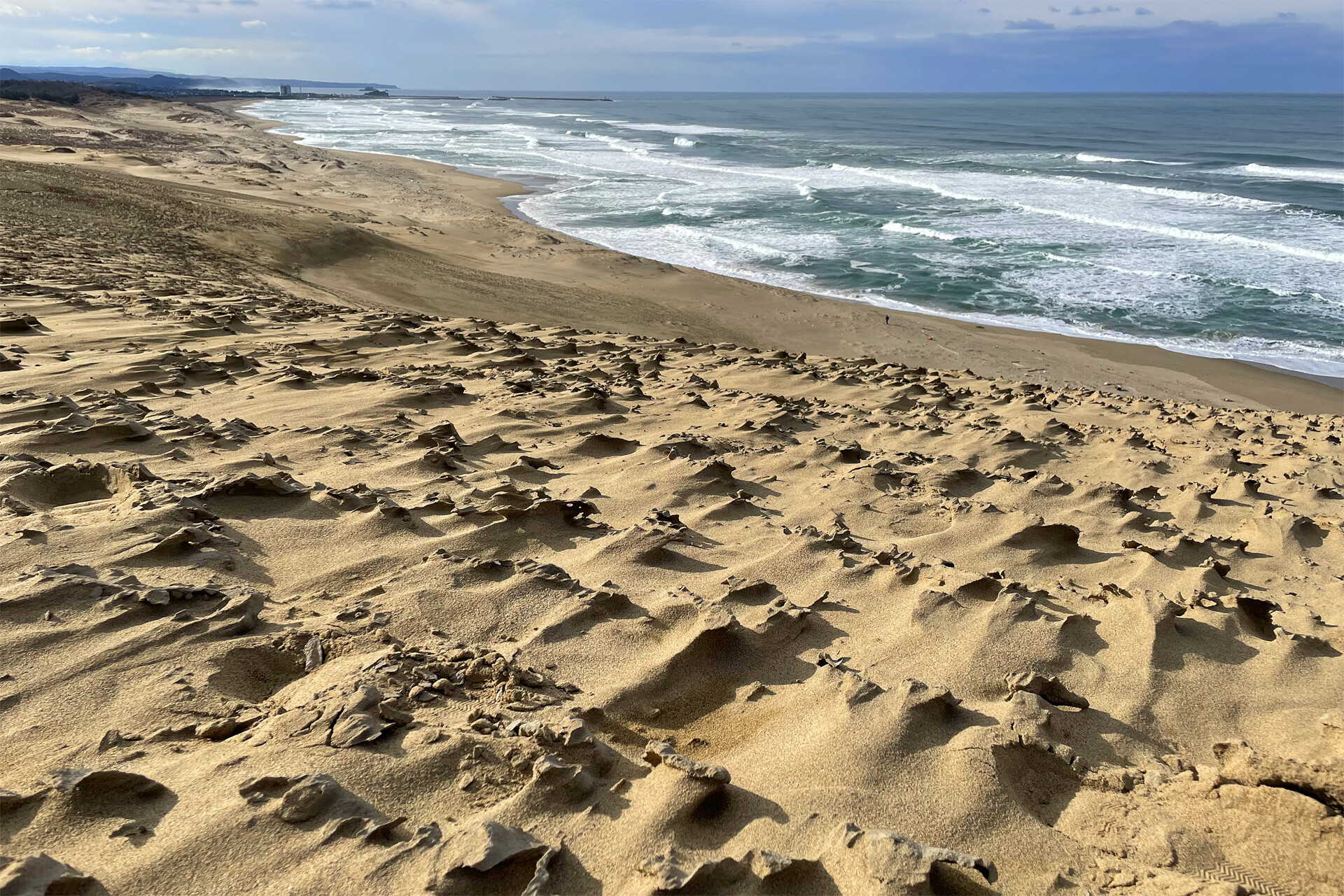 鳥取砂丘ビジターセンター 見どころその2 砂の模様いろいろ 今日見られる風と砂が作る模様は砂柱 だけではありません 風で削られてできた砂の模様や 風紋 そして砂簾 されん も見られます 山陰海岸国立公園 山陰海岸ジオパーク 今日の鳥取砂丘